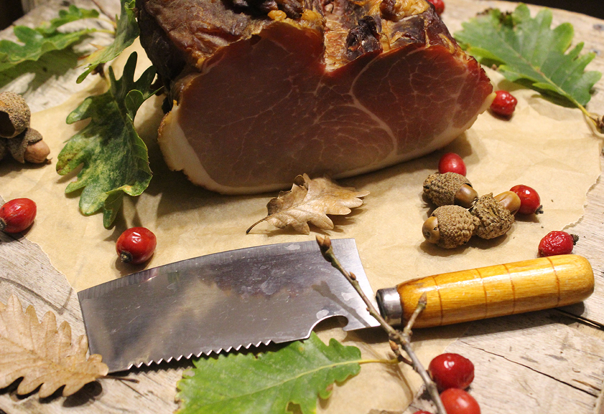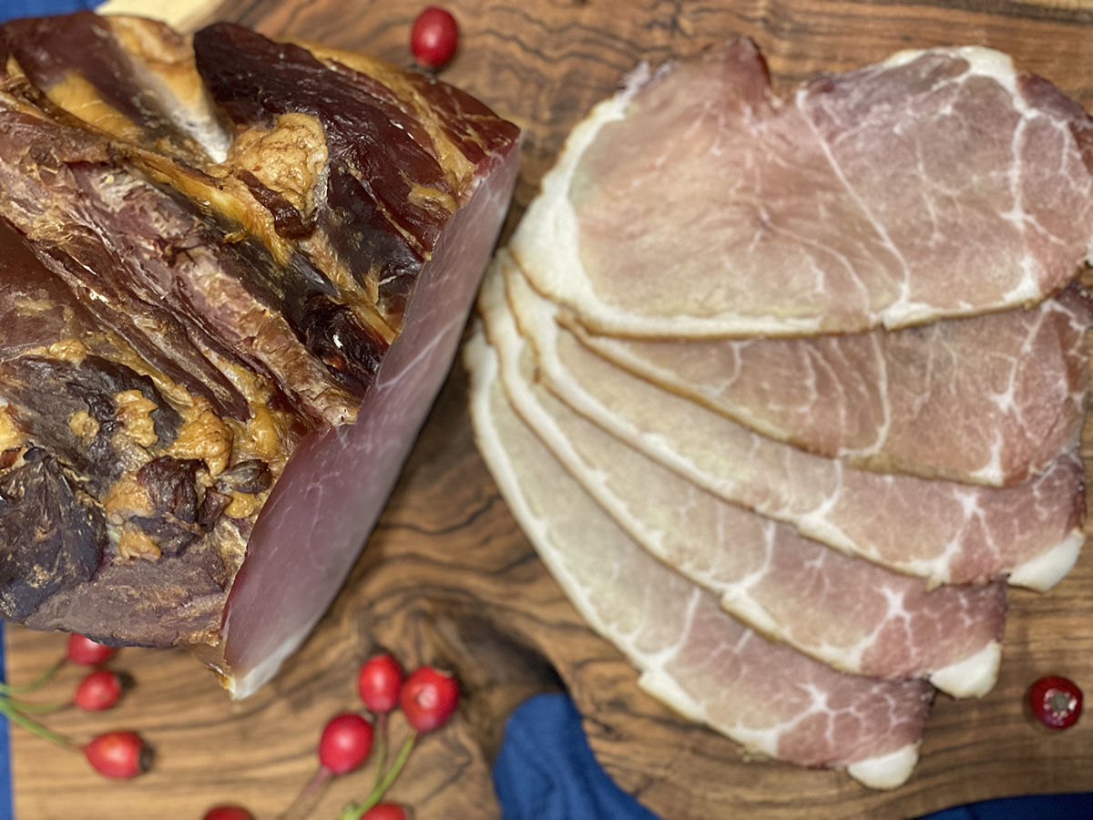 ორი კვირის გასვლის შემდეგ ხორცი იკიდება და იბოლება გაფილტრული, სუფთა ბოლით 3-4 საათის განმავლობაში, ცივი პროცესით, რომელიც გრძელდება 1,5-2 თვე. შებოლვისთვის გამოიყენება მხოლოდ ფოთლოვანი ხის ნახერხი, რაც პროდუქტის არომატს უნიკალურ გემოსა და ბუნებრივ სურნელს ანიჭებს.